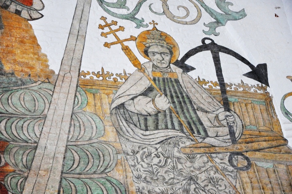 Another saint revered by sailors in Europe and believed to protect them was St. Clement. After the waters receded from the spot where St. Clement was martyred by being thrown into the sea with an anchor tied to his back, a chapel appeared. For this reason, some sailors believed it to be sacred (Bassett, 1885:83). The Aarhus Cathedral, located in the coastal city Denmark, is also dedicated to him. Inside the cathedral, one can see paintings on the walls depicting St. Clement with an anchor in his hand (Fig. 2).